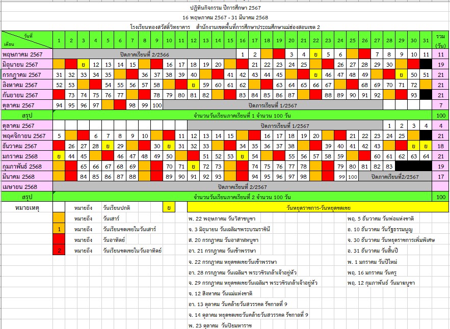 ปฏิทินกิจกรรม ปีการศึกษา 2567 |