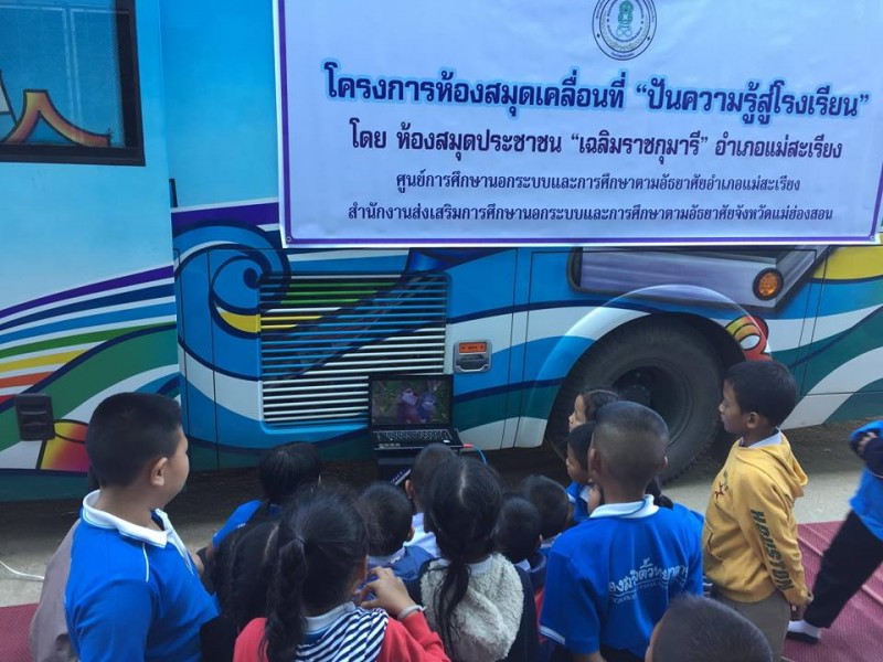 โครงการห้องสมุดเคลื่อนที่ "ปันความรู้สู่โรงเรียน" โดยห้องสมุดประชาชน อำเภอแม่สะเรียง
