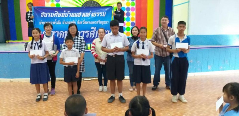ชมรมศิษย์บ้านแสงแห่งธรรม จ.พระนครศรีอยุธยา มอบทุนการศึกษาให้แก่เด็กนักเรียน