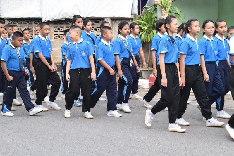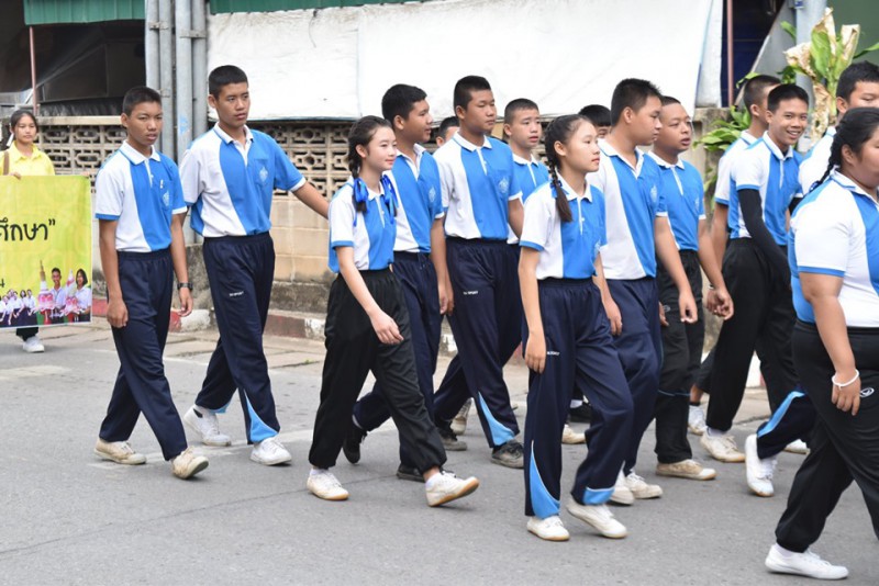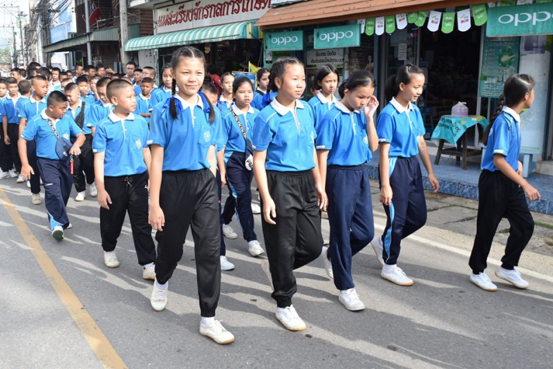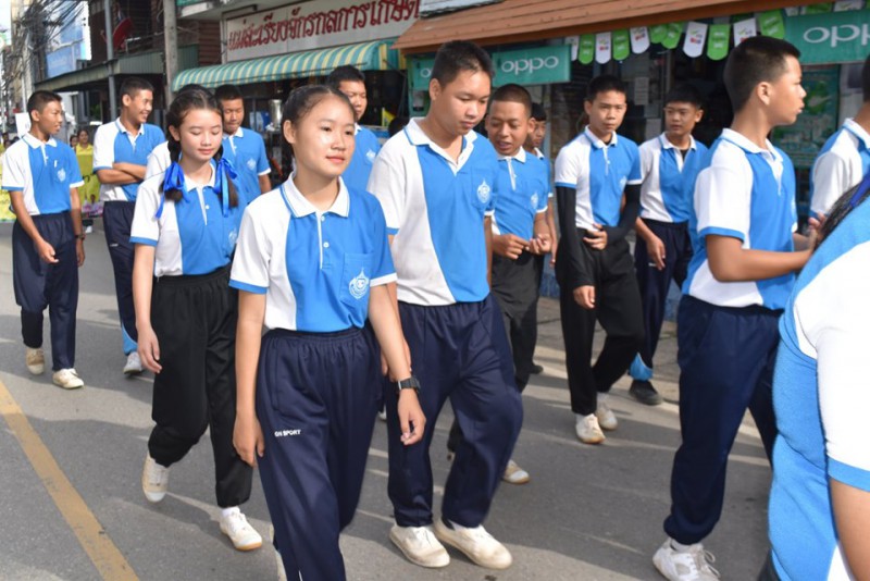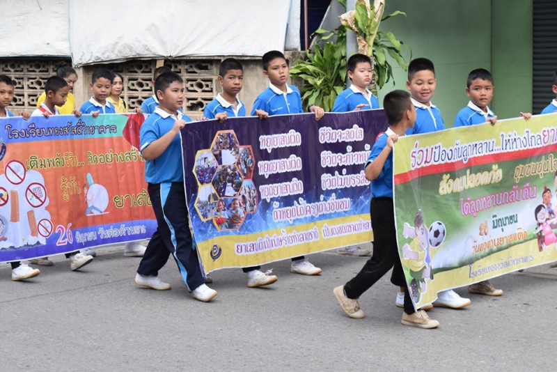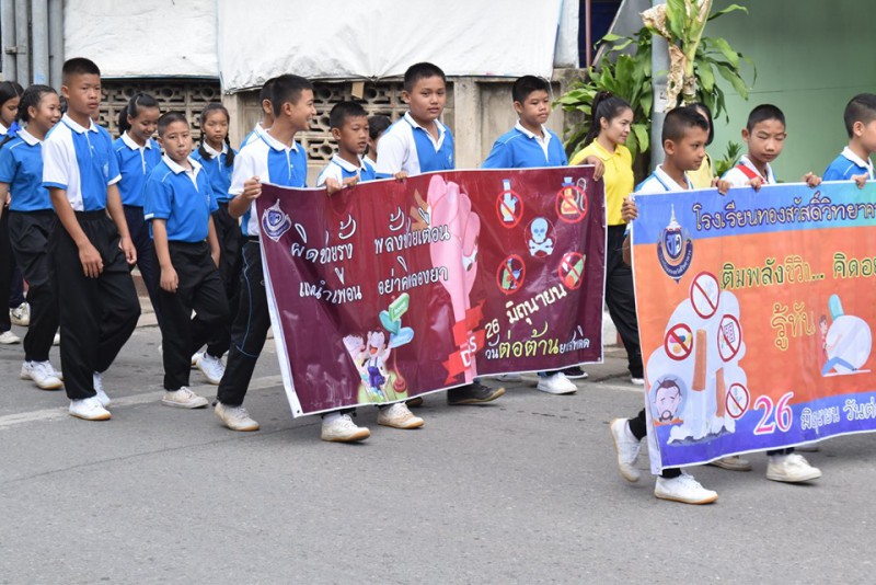 โรงเรียนทองสวัสดิ์วิทยาคารร่วมเดินรณรงค์วันต่อต้านยาเสพติด 26 มิถุนายน 2562 “มุ่งมั่น แก้ไข ขจัดภัยยาเสพติด”