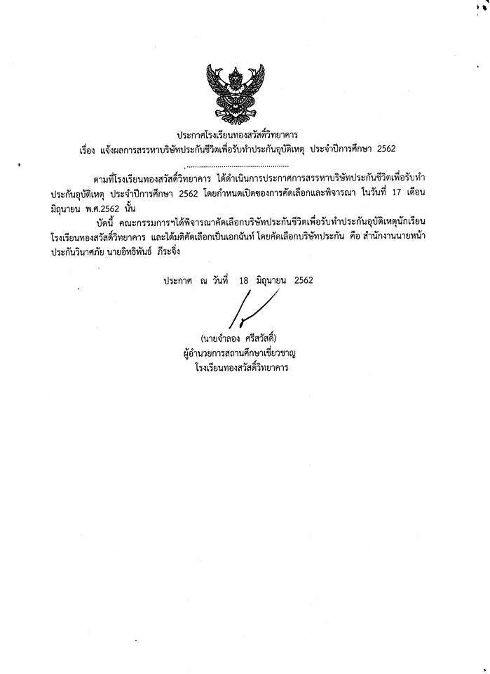 ประกาศผลการสรรหาบริษัทประกันภัย